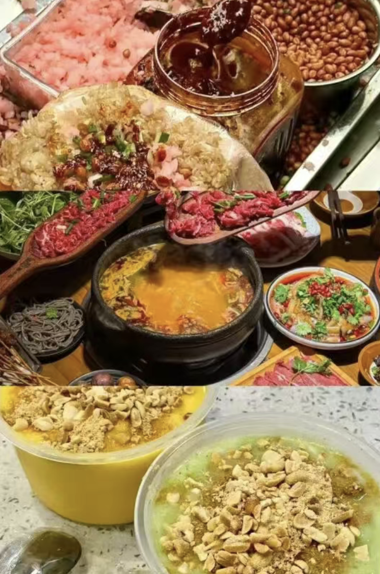 丝娃娃、肠旺面、烙锅、豆腐圆子、酸汤火锅、豆米火锅、铁签烧烤、酸粉、糯米饭、冰浆......香气扑鼻,满满的市井烟火气直接拿捏你的胃。