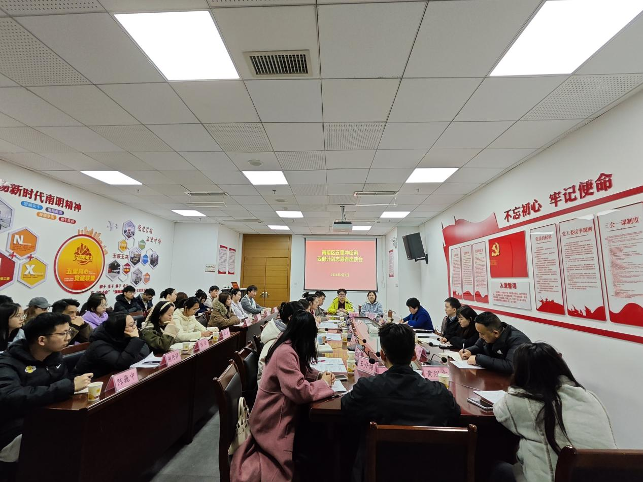 此次座谈会覆盖南明区花果园片区五里冲街道、花果园街道、小车河街道及兰花都街道的全体在岗西部计划志愿者。会上,共青团贵阳市委、市项目办与志愿者们亲切交流,细致倾听大家在基层服务中的成长感悟、收获体会及未来发展规划,全面了解区项目办、各服务单位西部计划项目年度实施情况,广泛征集大家对项目推进、服务保障等工作的意见建议。结合交流情况,共青团贵阳市委书记付宇一就进一步做好大学生志愿服务西部计划有关工作提出了三点希望和要求。
